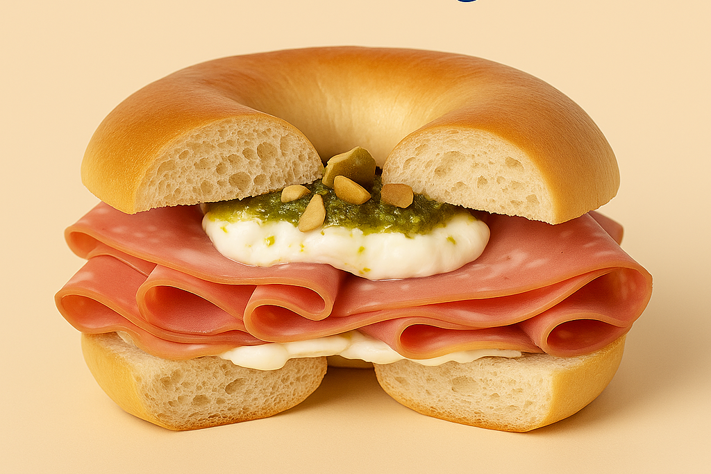 Mortadela italiana, Burrata, Pesto y Pistachos.